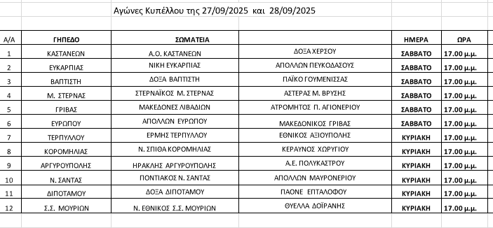 Πρόγραμμα 3ης αγωνιστικής κυπέλλου (4-5/10/2025)