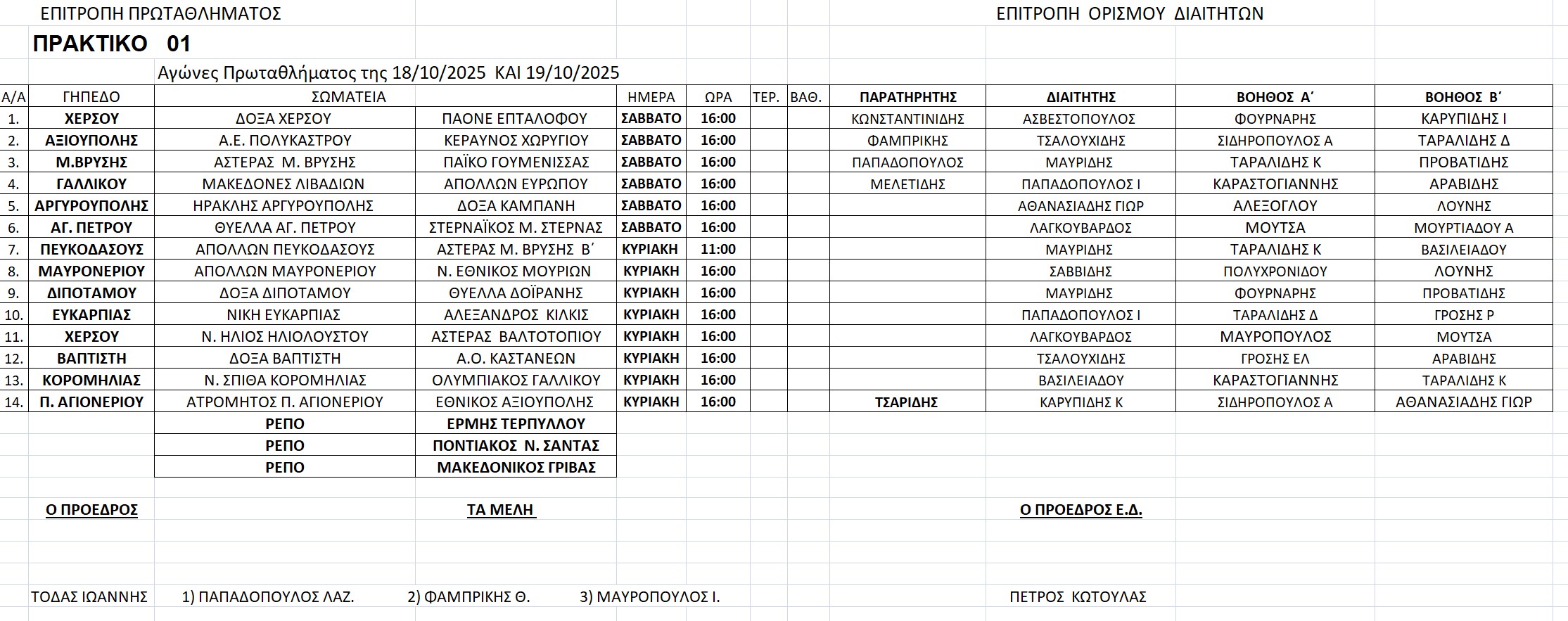 Οι διαιτητές των αγώνων 18-19/10/2025