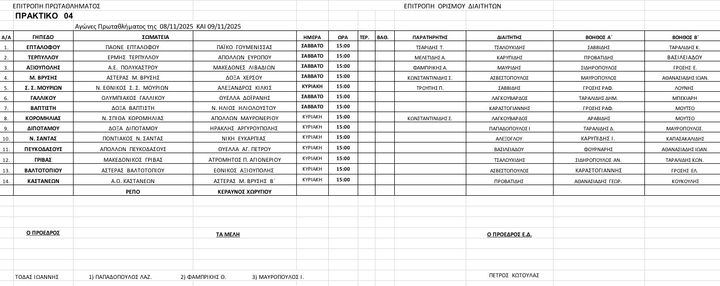 Πρακτικό πειθαρχικής επιτροπής πρωταθλήματος #1