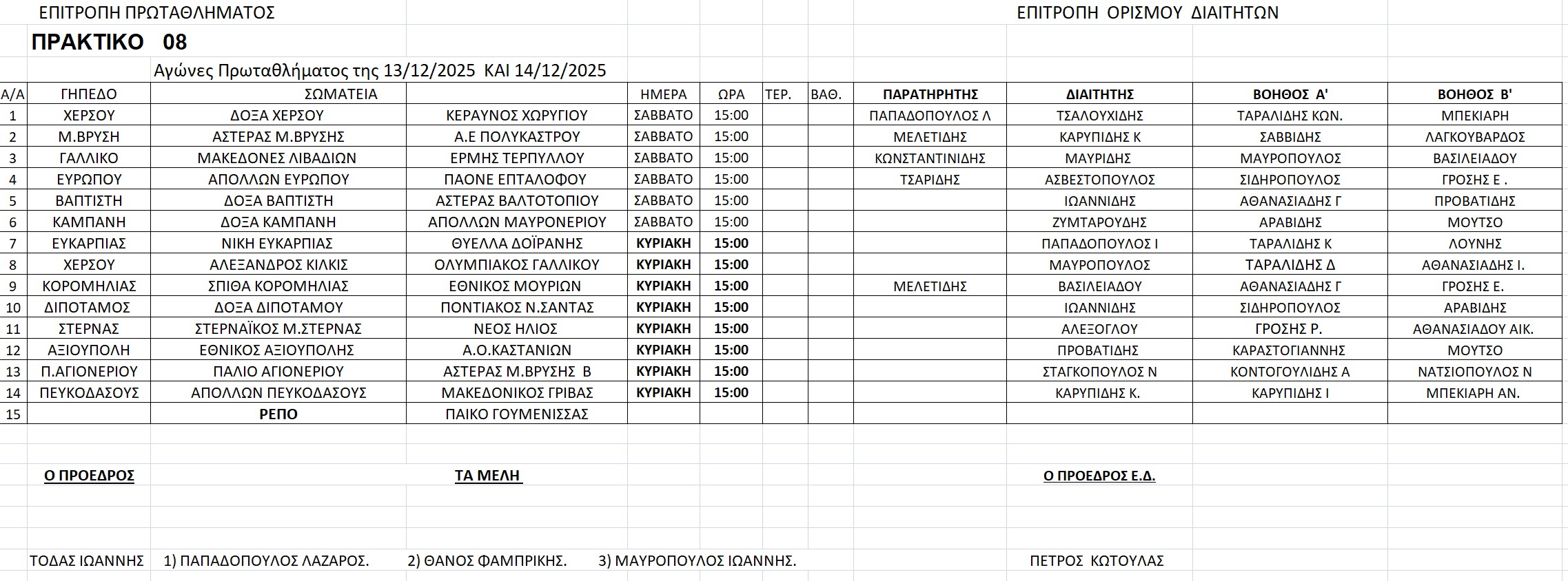 Οι διαιτητές των αγώνων 22-23/11/2025
