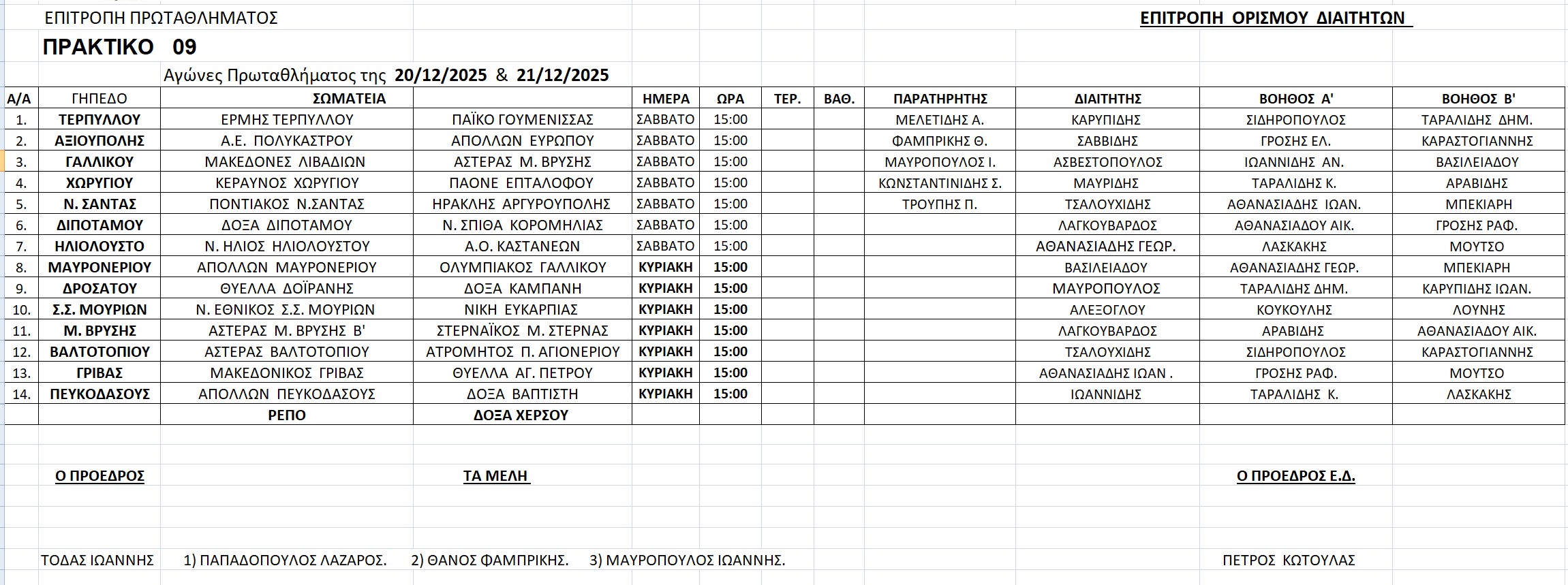 Οι διαιτητές των αγώνων 20-21/12/2025