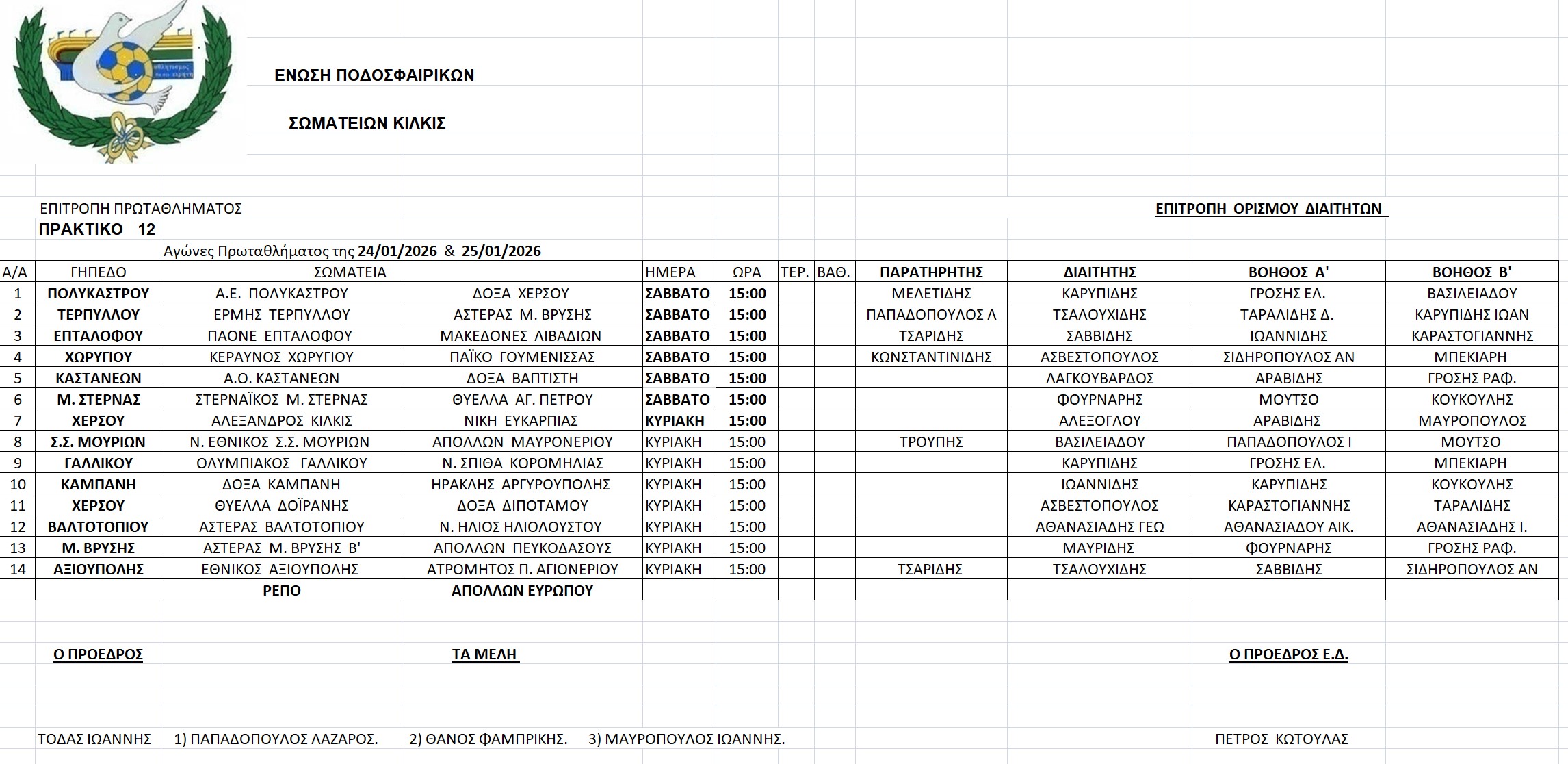 Οι διαιτητές 24-25/1/2026