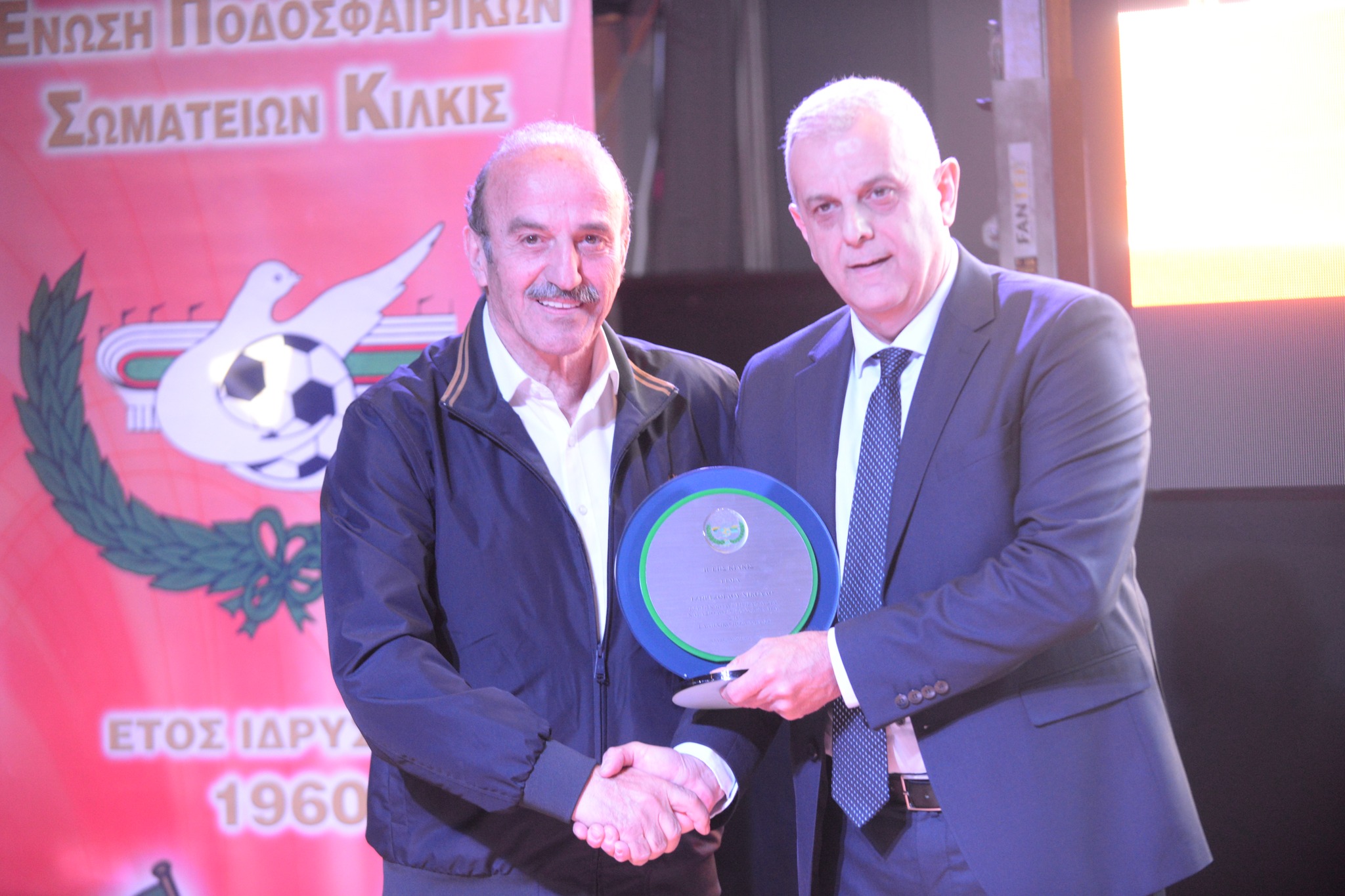 Εκ μέρους του Προέδρου της ΕΠΟ Χρυσόστομου Γκαγκάτση επιδόθηκε αναμνηστικό στον Πρόεδρο της ΕΠΣ Κιλκίς κ. Πάταραενώ οΑναπληρωτής Πρόεδρος της ΕΠΟ και Πρόεδρος ΕΠΣ Ηρακλείου ΝίκοςΤζώρτζογλουτιμήθηκε από την ΕΠΣ Κιλκίς για την πολυετή και σημαντική προσφορά του στο Ελληνικό ποδόσφαιρο, ο οποίος και χαιρέτησε την εκδήλωση.