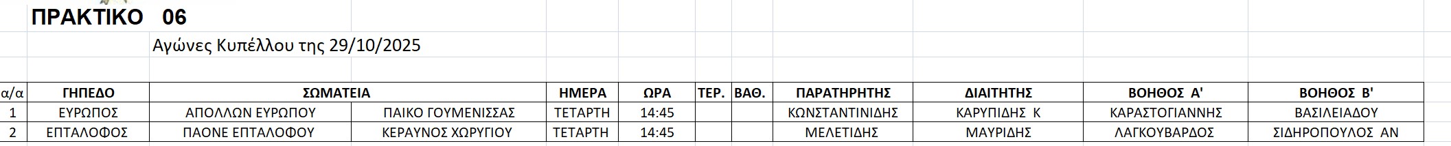 Πρόγραμμα και διαιτητές αγώνων κυπέλλου της Τετάρτης 29/10/2025