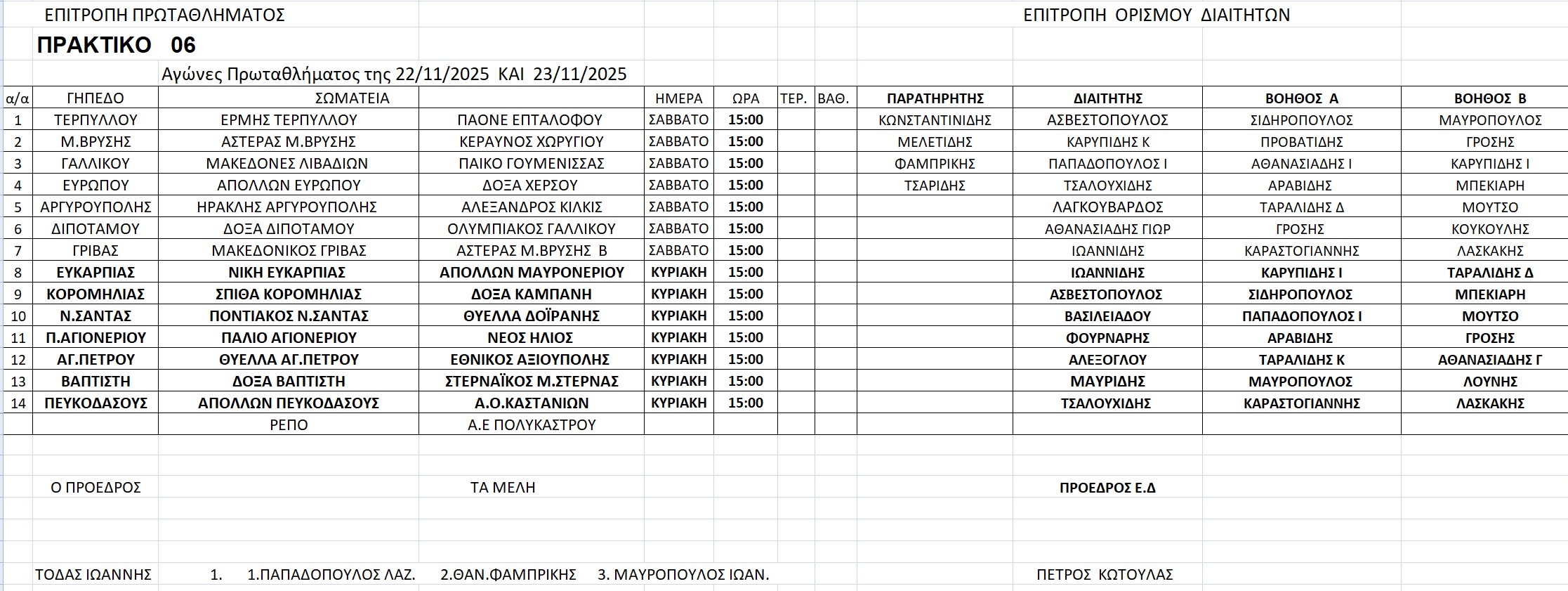 Οι διαιτητές των αγώνων 22-23/11/2025