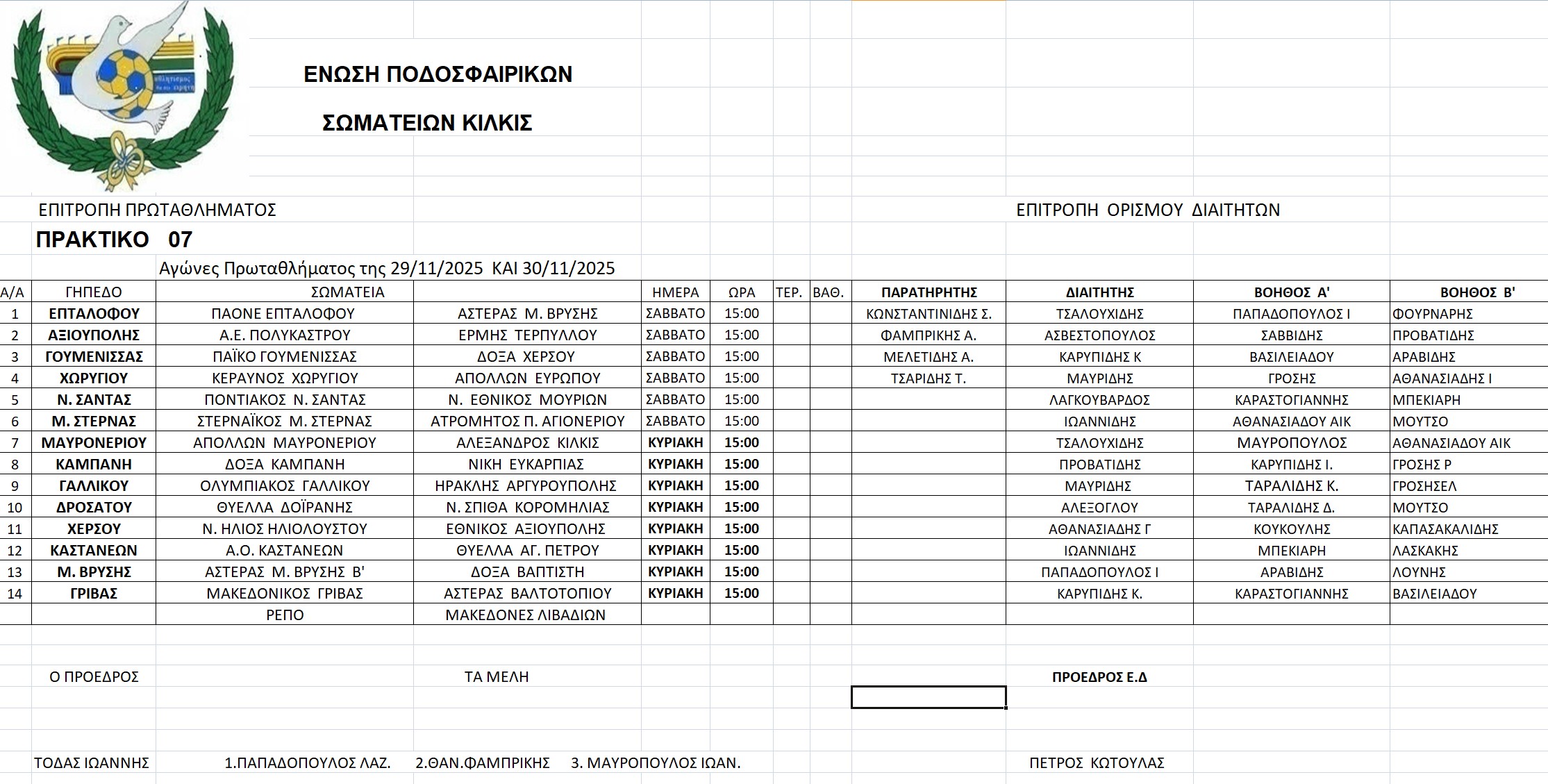 Οι διαιτητές των αγώνων 29-30/11/2025