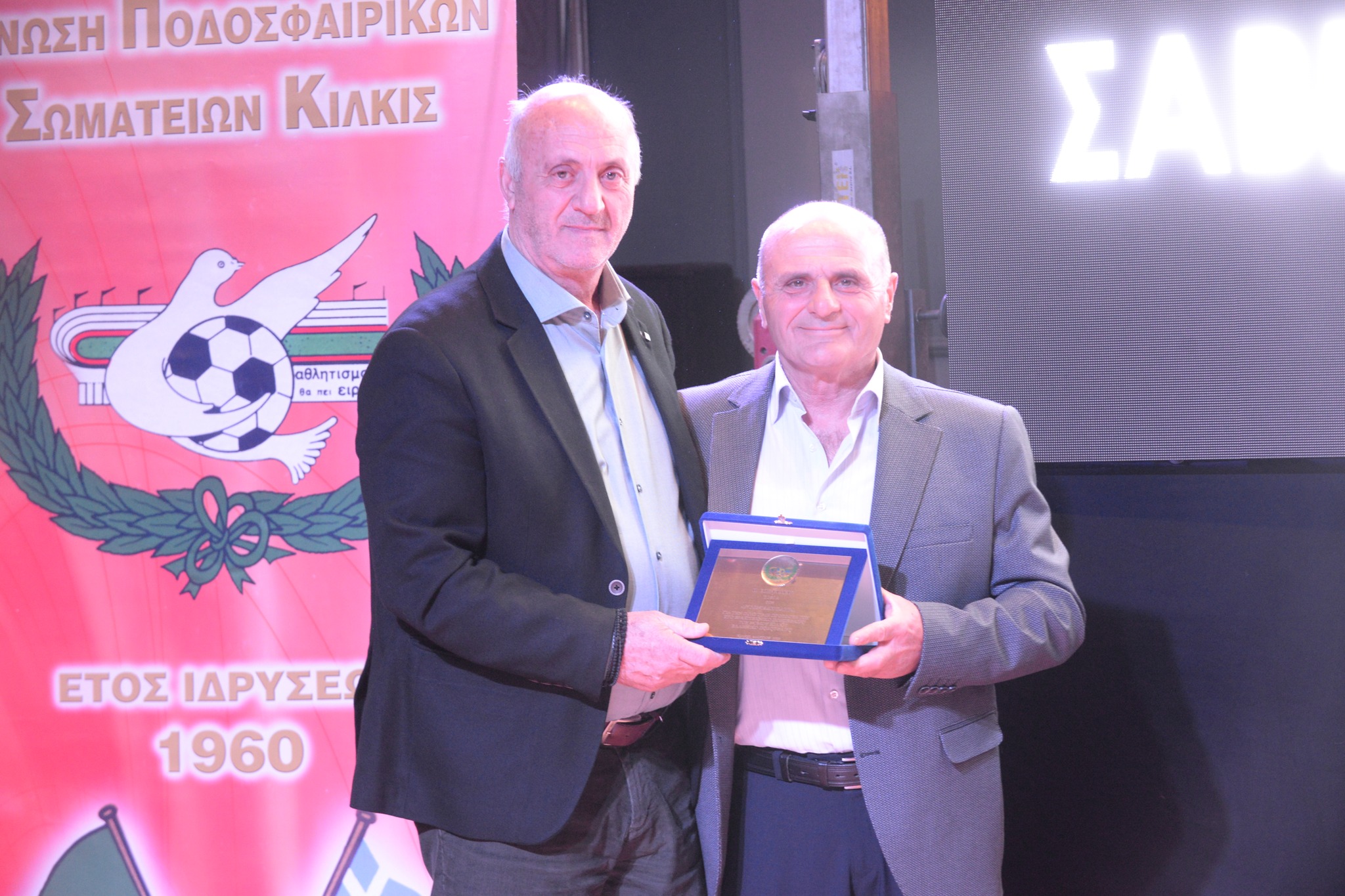 Εκ μέρους του Προέδρου της ΕΠΟ Χρυσόστομου Γκαγκάτση επιδόθηκε αναμνηστικό στον Πρόεδρο της ΕΠΣ Κιλκίς κ. Πάταραενώ οΑναπληρωτής Πρόεδρος της ΕΠΟ και Πρόεδρος ΕΠΣ Ηρακλείου ΝίκοςΤζώρτζογλουτιμήθηκε από την ΕΠΣ Κιλκίς για την πολυετή και σημαντική προσφορά του στο Ελληνικό ποδόσφαιρο, ο οποίος και χαιρέτησε την εκδήλωση.