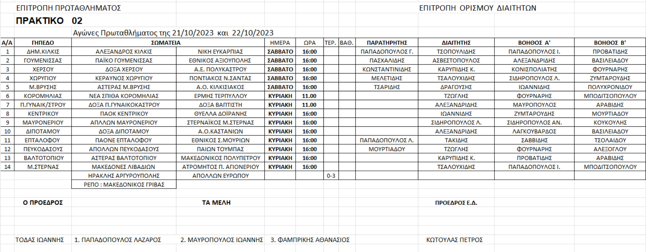 Οι διαιτητές των αγώνων του Σαββατοκύριακου 21-22/10/2023
